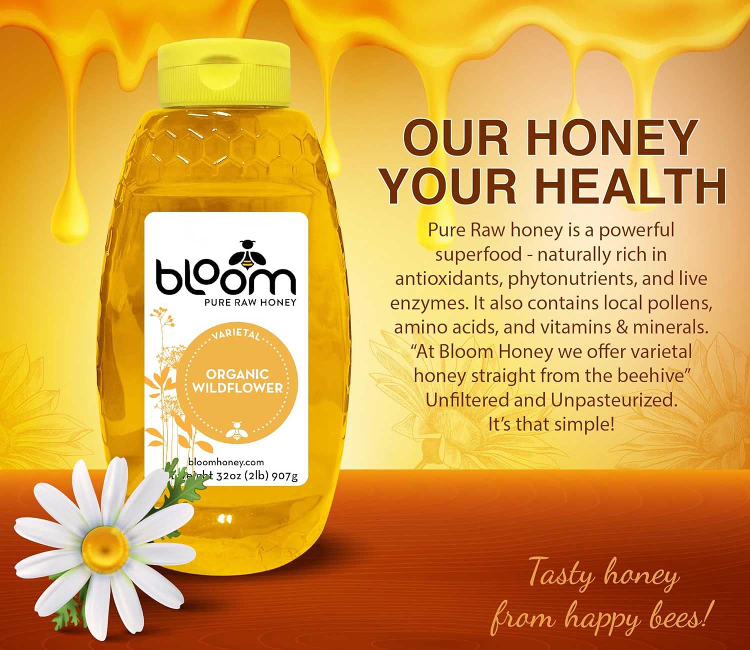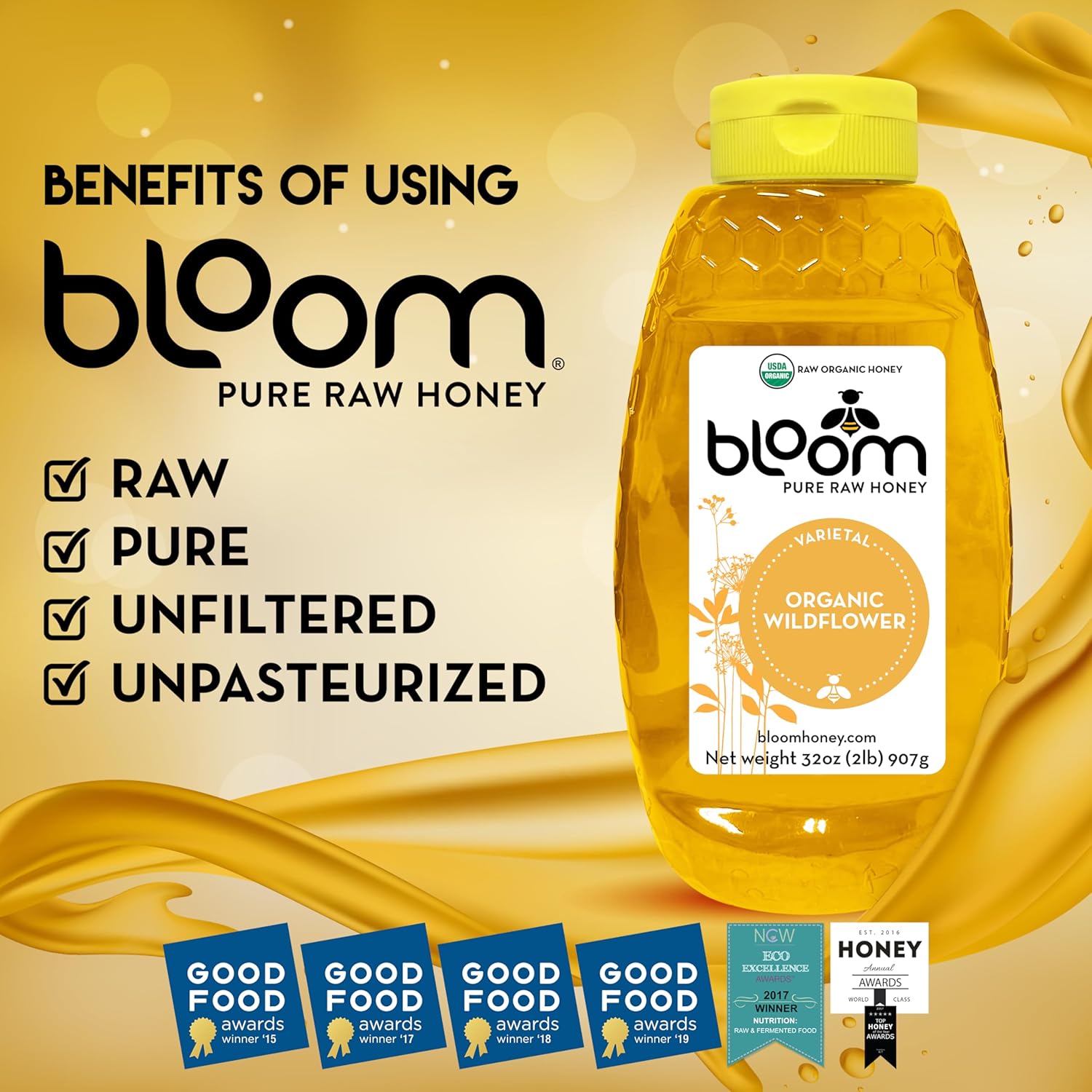 Bloom Pure Organic Raw Unfiltered Honey , 32oz
