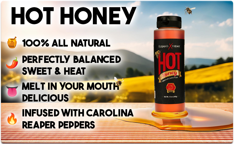Carolina Reaper Pepper, Honey, Vinegar – Medium Heat Sweet & Spicy Honey Sauce Flavor