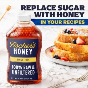 Fischer’s Raw Pure Honey is unprocessed and thoughtfully packaged in a convenient 40 oz squeeze bottle for everyday ease. Responsibly sourced from beekeepers committed to bee welfare, this honey is 100% raw, unfiltered, and unpasteurized—free from additives, syrups, or artificial flavors.