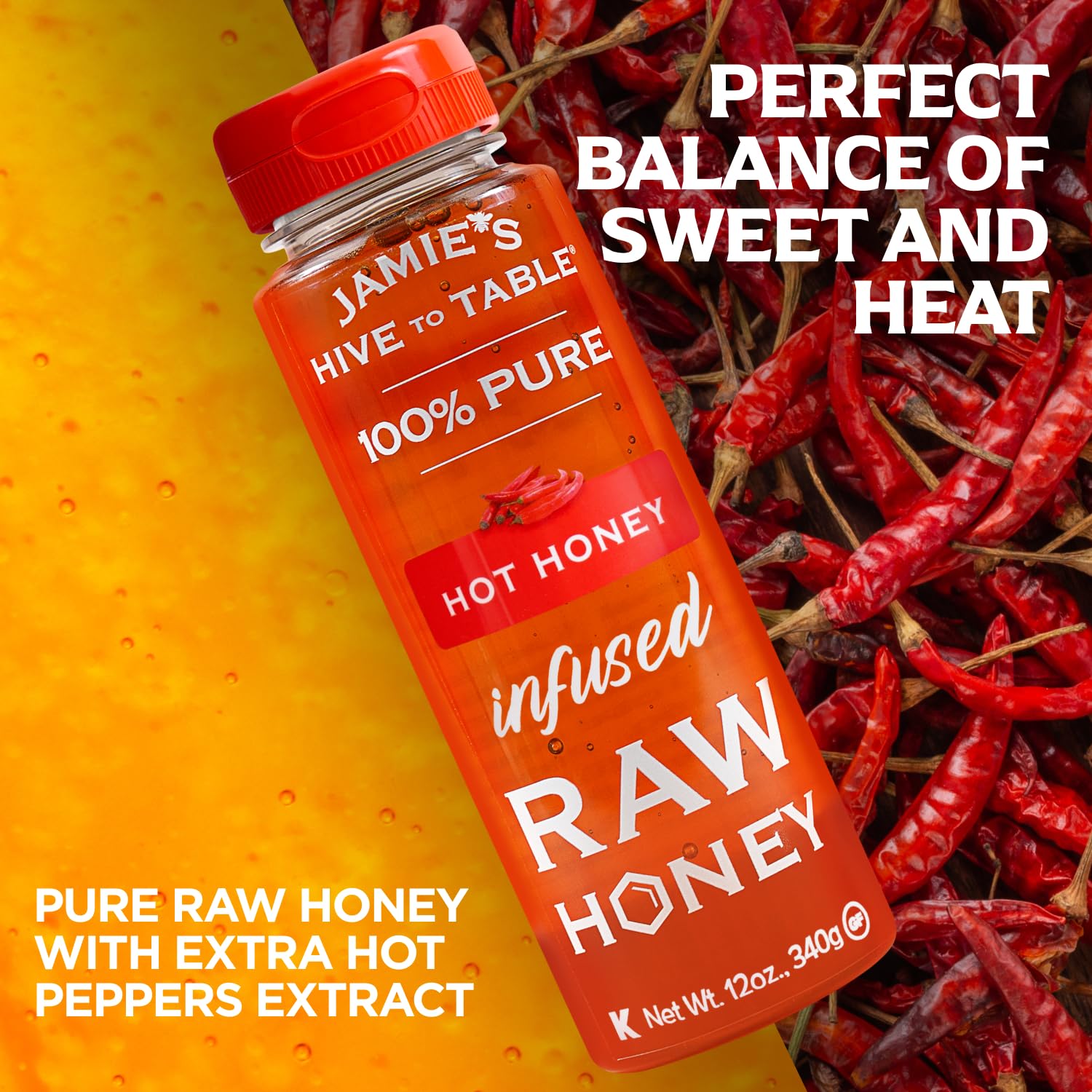 What makes it unique is the addition of a natural extract from extra-hot peppers, carefully blended to create a perfect balance of sweet and spicy. This artisanal hot honey provides a distinct and exciting flavor experience, adding depth and heat to a wide variety of dishes.