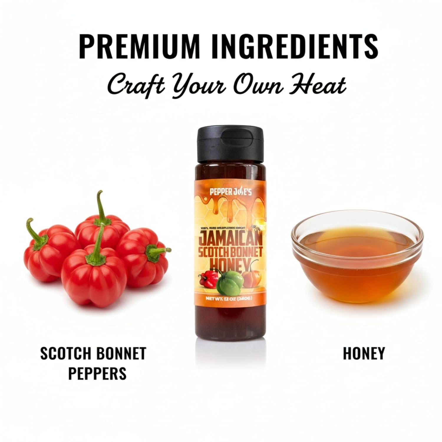 Pepper Joe’s Hot Honey Scotch Bonnet Infused Honey. 12oz